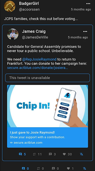 The Twitter account BadgerGirl (@acoorssen) no longer exists.